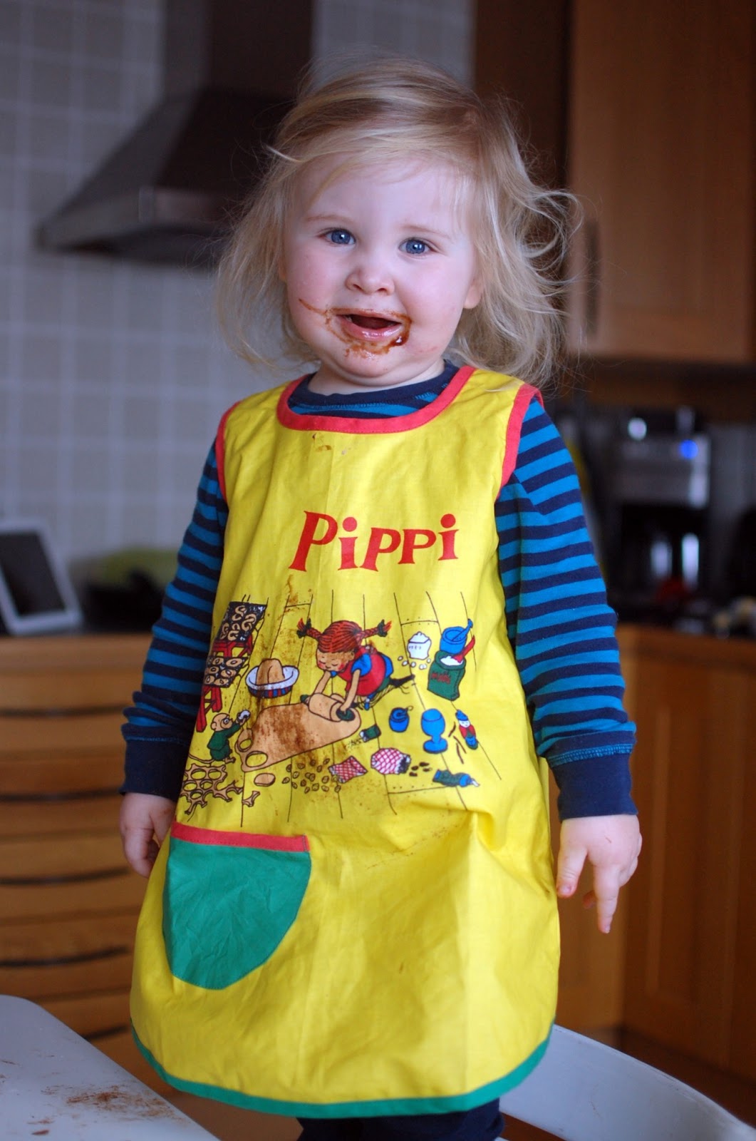 Sen var det lek, lek och lek med nya presenterna. Också lite bak på det. Skulle få finbesök på kvällen och då Agnes fått bästa bakförklädet av Daniel och Emelie så var det klart att hon skulle hjälpa till att baka. Eller vara smakråd snarare, haha, lilla gottegrisen ;)